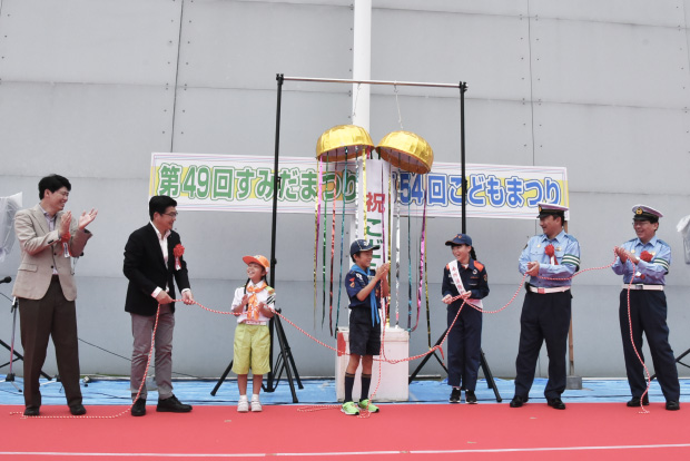 「すみだまつり・こどもまつり」は区民の交流により「ふるさとすみだ」の意識を高め地域の振興を図ると共に、こどもの安全と健康を願い、連携と友情を育むことを目的として毎年10月に開催しています。